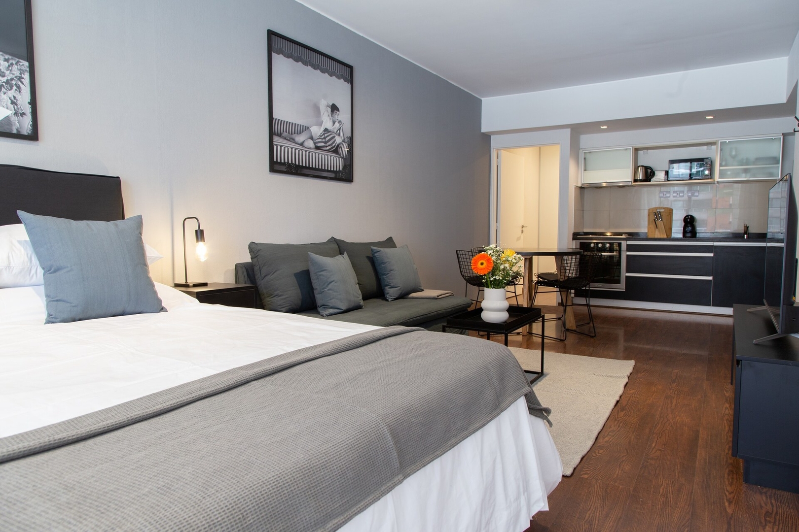 Bienvenidos a nuestro moderno y elegante Suite en Villa Urquiza. Nuestra propiedad cuenta con un concepto abierto, cocina completamente equipada, cama queen-size y un baño elegante con una ducha grande. Está convenientemente ubicado cerca de la estación de metro Los Incas y de una gran variedad de bares, restaurantes y tiendas. ¡Te invitamos a disfrutar de una estadía cómoda y memorable en nuestra propiedad!