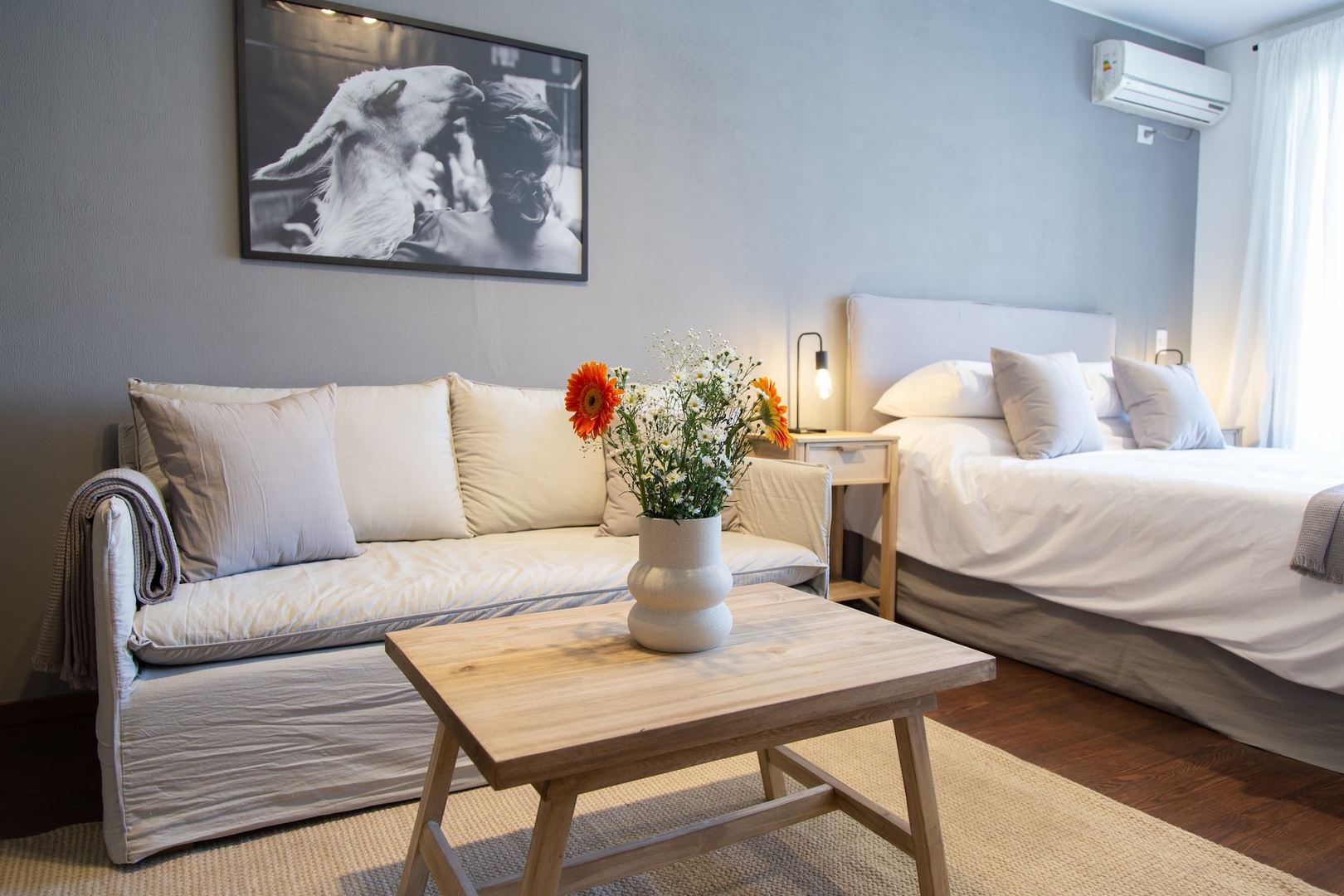 Bienvenidos a nuestro moderno y elegante Suite en Villa Urquiza. Nuestra propiedad cuenta con un concepto abierto, cocina completamente equipada, cama queen-size y un baño elegante con una ducha grande. Está convenientemente ubicado cerca de la estación de metro Los Incas y de una gran variedad de bares, restaurantes y tiendas. ¡Te invitamos a disfrutar de una estadía cómoda y memorable en nuestra propiedad!