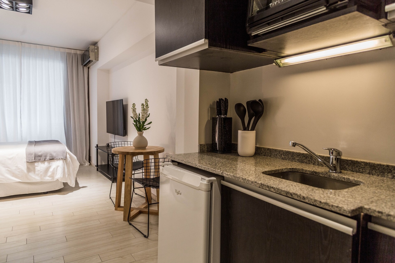 Catalpa Modern Studio es un luminoso monoambiente en Almagro, ideal para disfrutar de una estadía cómoda y moderna. El edificio ofrece pileta, gimnasio, terraza y laundry, perfectos para tu confort. Con un diseño acogedor y bien equipado, es un espacio ideal para relajarse y aprovechar la excelente ubicación, cerca de transporte, cafés y tiendas.