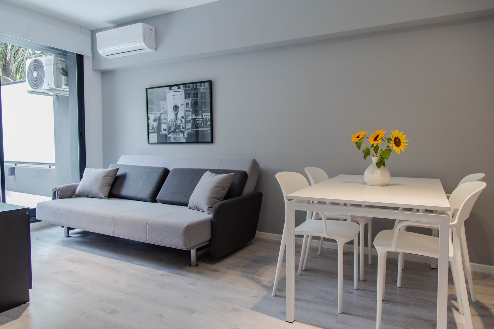 Felicia Lovely Apartment es un moderno y luminoso departamento de 2 ambientes ubicado en el corazón de Almagro, ideal para quienes buscan combinar confort y estilo. Ofrece un amplio balcón perfecto para relajarse, cocina completamente equipada y espacios llenos de luz natural. El edificio cuenta con gimnasio y pileta, ideales para disfrutar al máximo de tu estadía. Su excelente ubicación brinda fácil acceso al transporte público, comercios y una gran variedad de bares y restaurantes.
