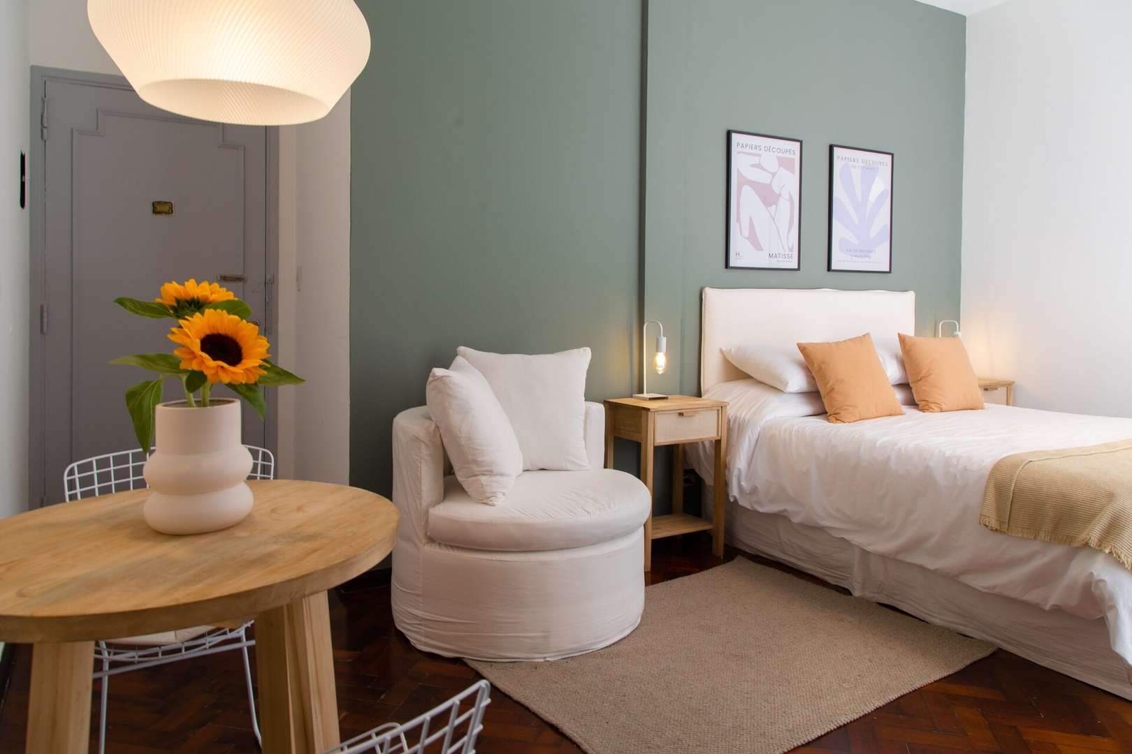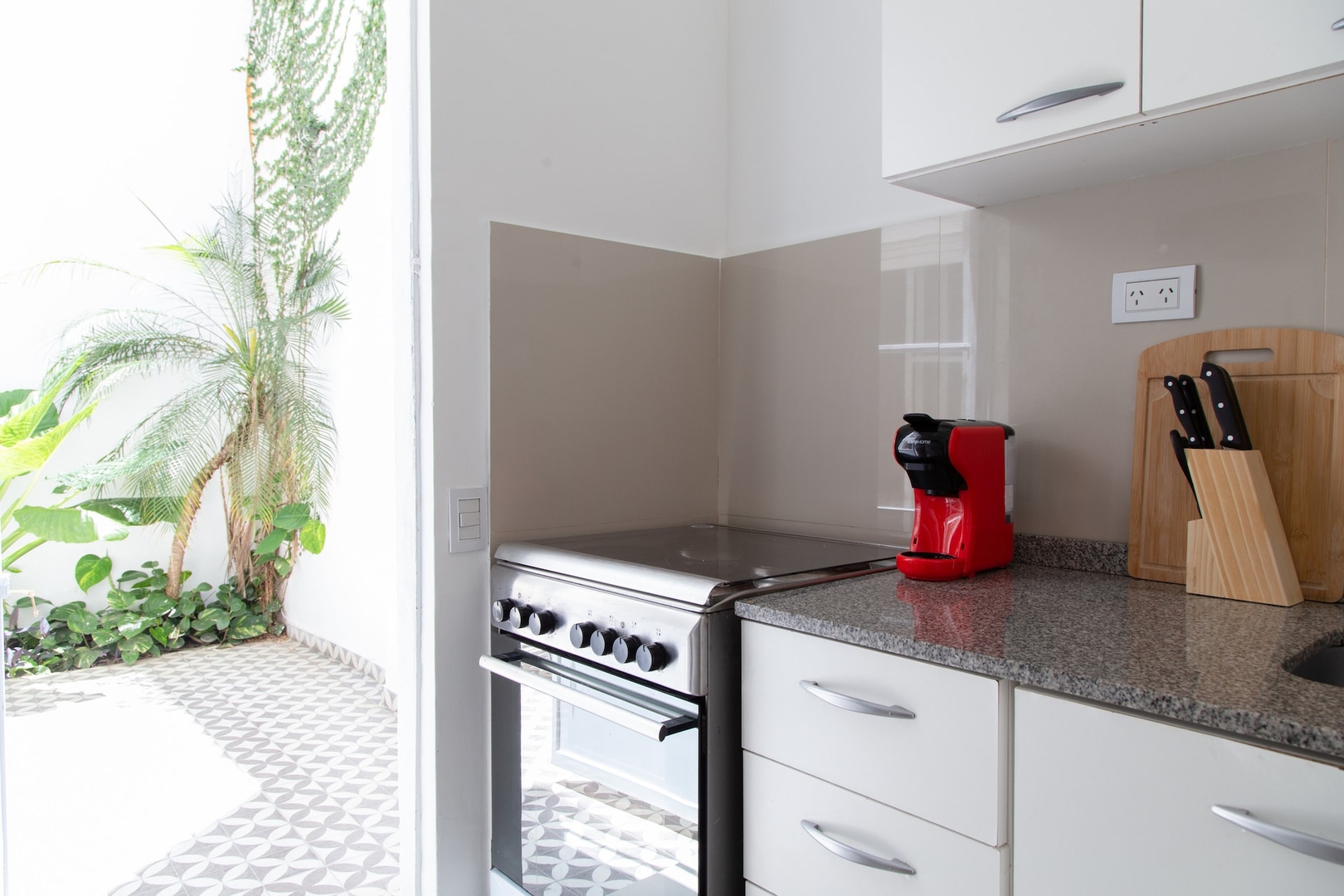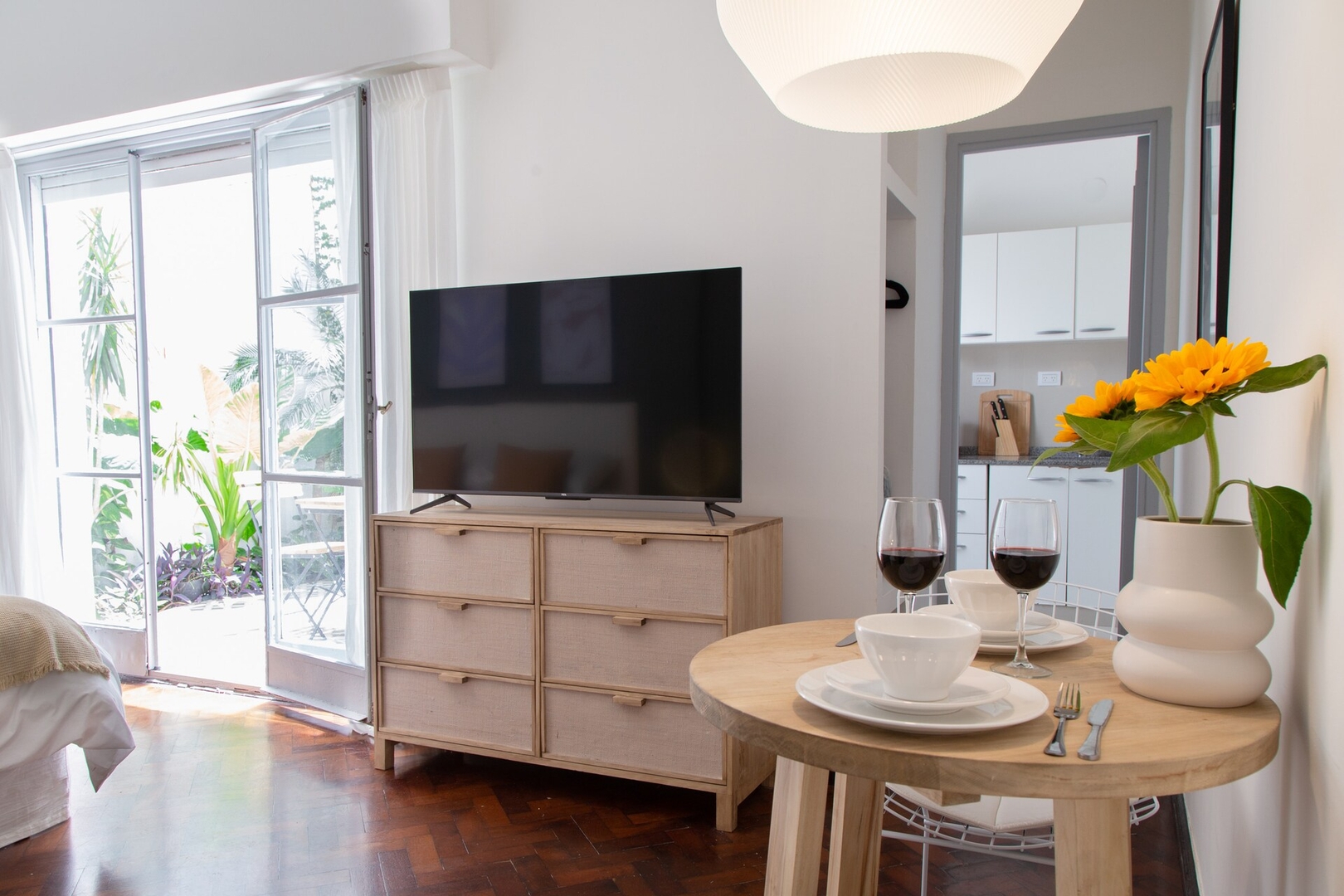 Viví el encanto de Buenos Aires en este elegante studio ubicado en el corazón de Recoleta, dentro de un edificio clásico que combina historia y estilo. El espacio, cálido y luminoso, cuenta con una cómoda cama queen, cocina equipada y un encantador patio privado ideal para disfrutar de un café o una copa al aire libre. Gracias a su excelente ubicación, podrás descubrir caminando los atractivos más emblemáticos del barrio, rodeado de cafeterías, restaurantes y mas.