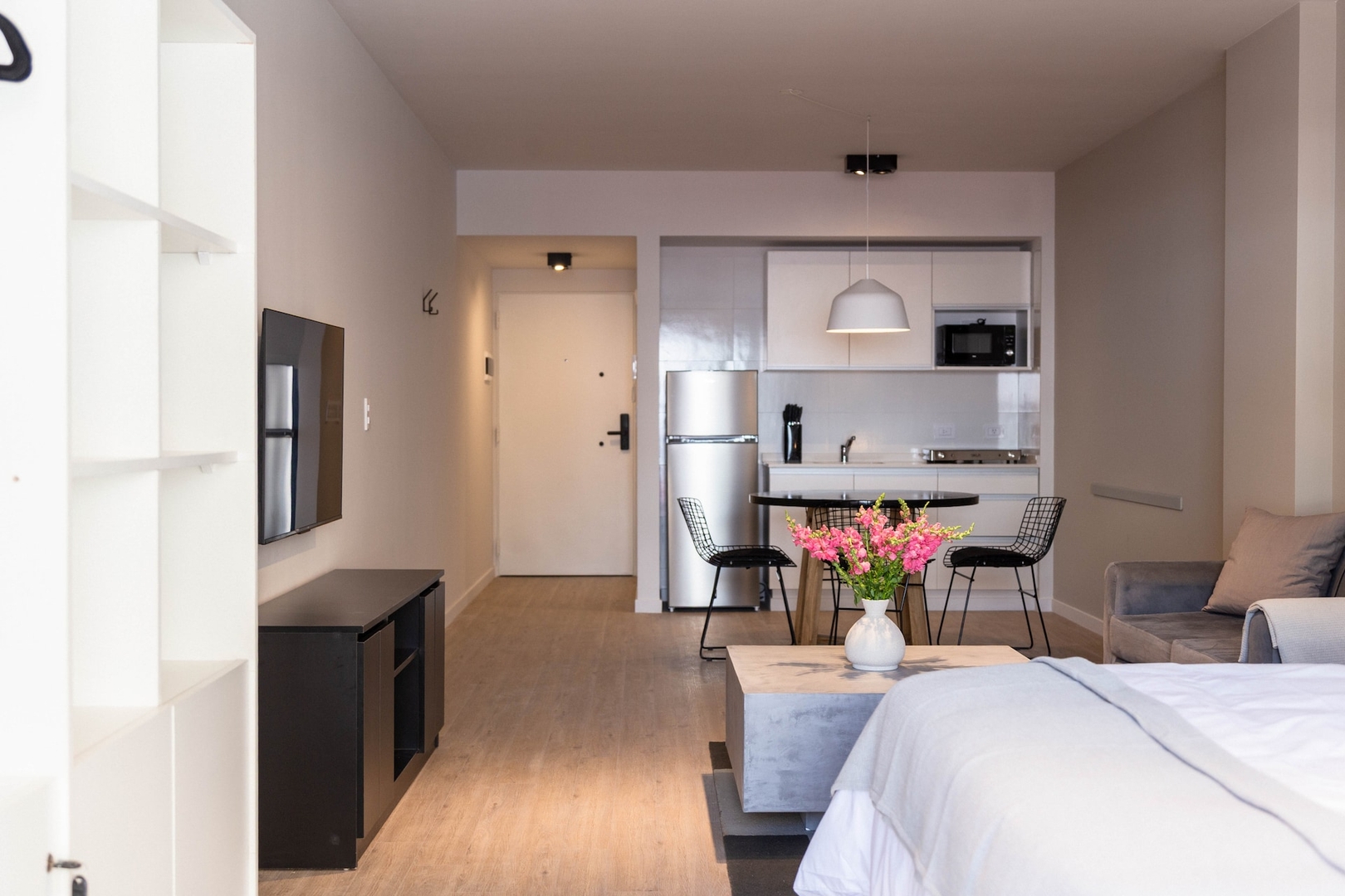 Boj Elegant Apartment es un luminoso y cómodo monoambiente en Balvanera, ideal para 2 huéspedes. Cuenta con comedor y un lindo balcón para disfrutar del aire libre. Su diseño moderno y funcional ofrece un espacio acogedor para descansar o trabajar. Ubicado en una excelente zona, con rápido acceso a transporte, cafés, tiendas y puntos turísticos. Perfecto para disfrutar Buenos Aires con comodidad.