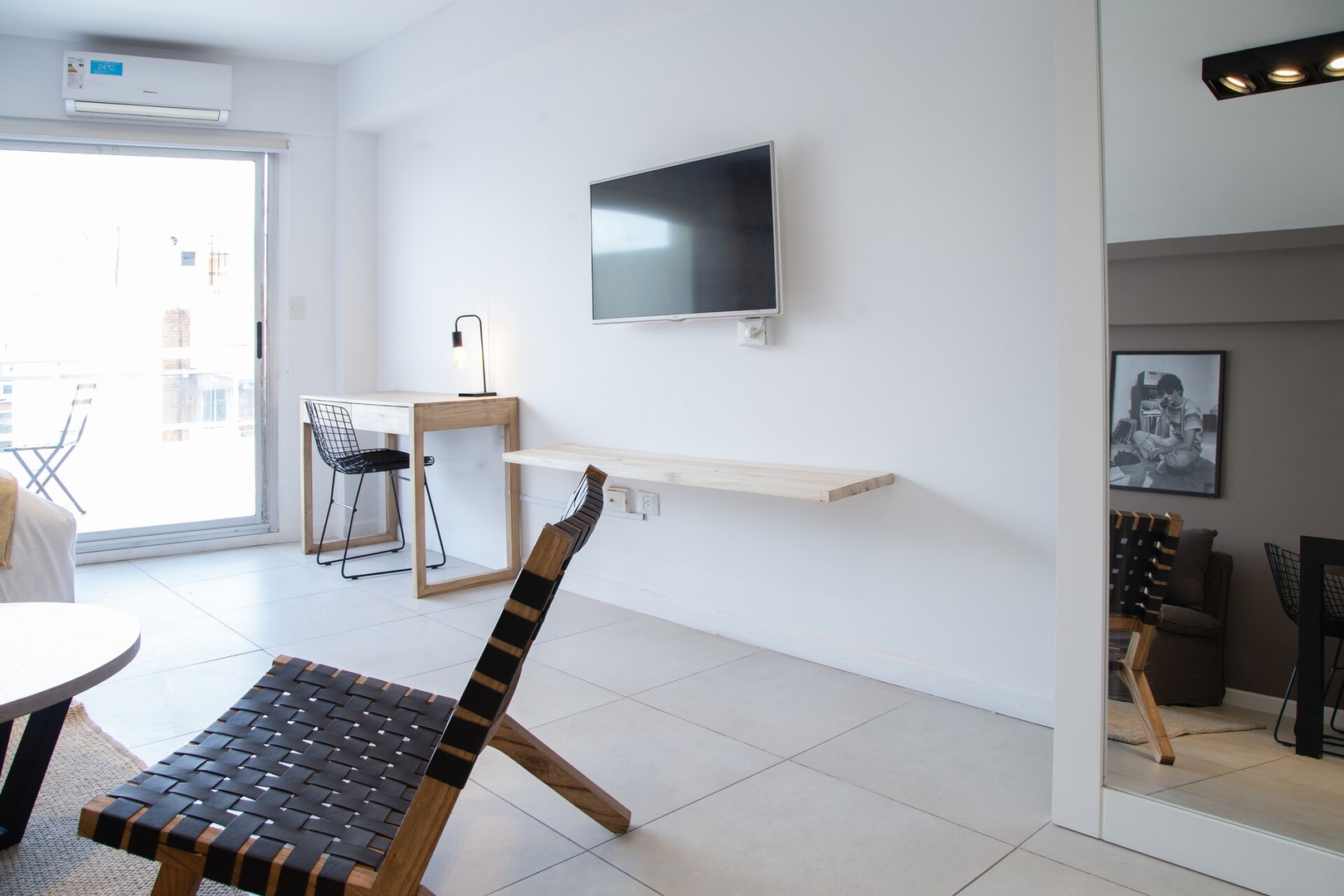 Elegante y luminoso studio en el corazón de Palermo, uno de los barrios más vibrantes de Buenos Aires. Rodeado de tiendas de diseño, restaurantes, bares y museos, es ideal para parejas. Cuenta con cómoda cama queen size, cocina totalmente equipada, Smart TV y un funcional escritorio para home office. Cada detalle fue pensado para brindarte confort y estilo. Viví una estadía moderna, cálida y con el auténtico espíritu porteño.