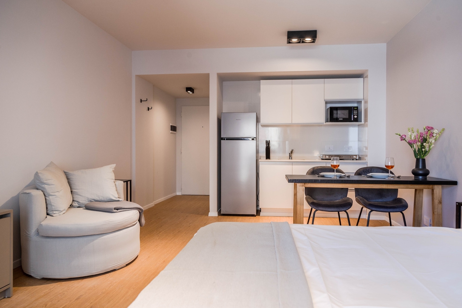 Lunaria Elegant Studio es un moderno y luminoso monoambiente ubicado en la zona turística de Balvanera, ideal para 2 huéspedes. Cuenta con un cómodo comedor, balcón y acceso a excelentes amenities como gimnasio, laundry y cowork. Un espacio elegante y funcional, perfecto para disfrutar una estadía confortable en una ubicación estratégica de Buenos Aires.