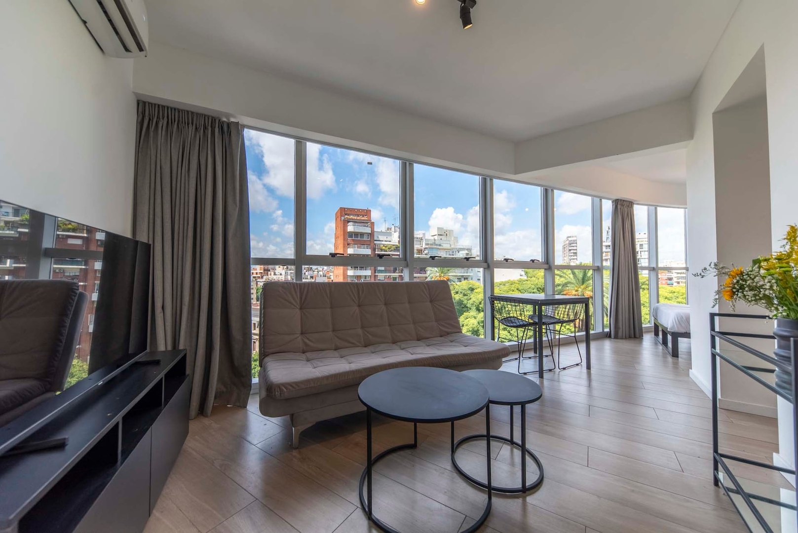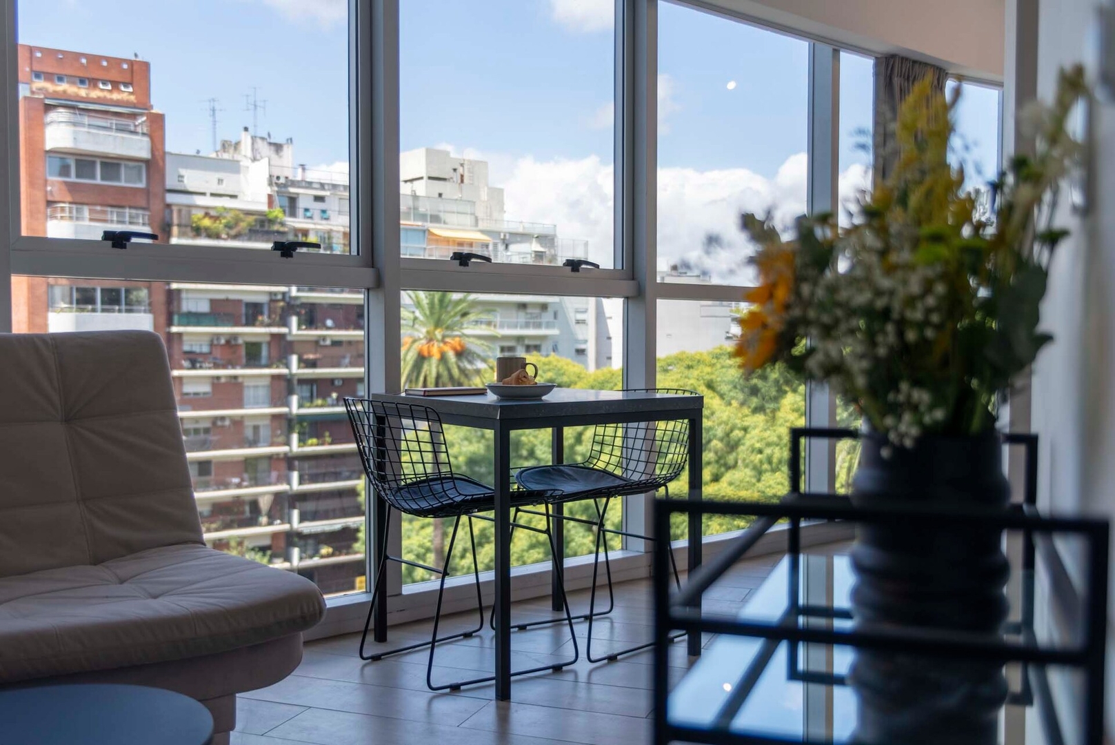 Luminoso monoambiente ideal para 2 huéspedes, con hermosa vista y un diseño moderno pensado para el confort. El edificio cuenta con pileta y gimnasio para disfrutar al máximo tu estadía. Ubicado frente a Plaza Güemes y a solo 5 cuadras del Alto Palermo Shopping, en una zona vibrante con excelente conectividad, cafés y restaurantes. Perfecto para vivir Palermo con estilo