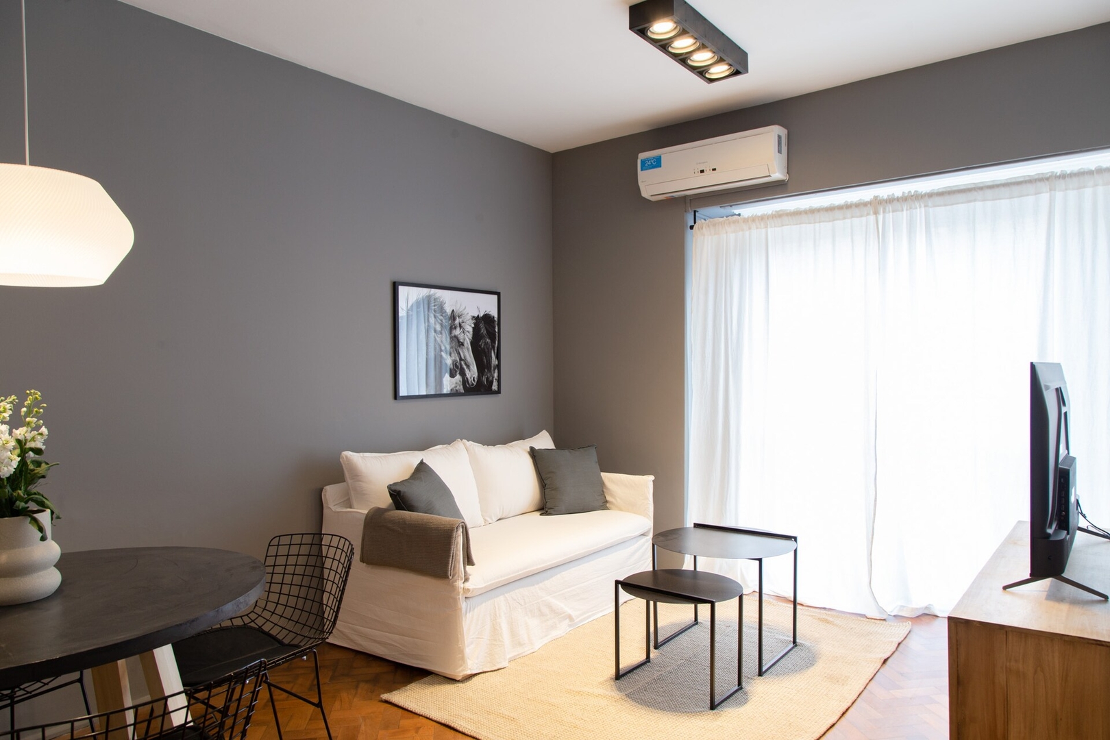 Encantador departamento de 3 ambientes en el exclusivo barrio de Recoleta, Buenos Aires. Muy luminoso y con un diseño moderno y sofisticado, cuenta con una cocina completamente equipada y dos cómodas habitaciones: una con cama matrimonial y otra con dos camas individuales, ideal para familias o grupos. Su ubicación es inmejorable, rodeado de cafés, restaurantes y tiendas emblemáticas, permitiendo disfrutar la ciudad con total comodidad y estilo.
